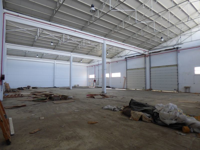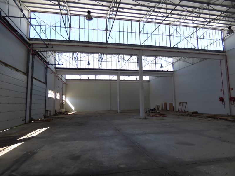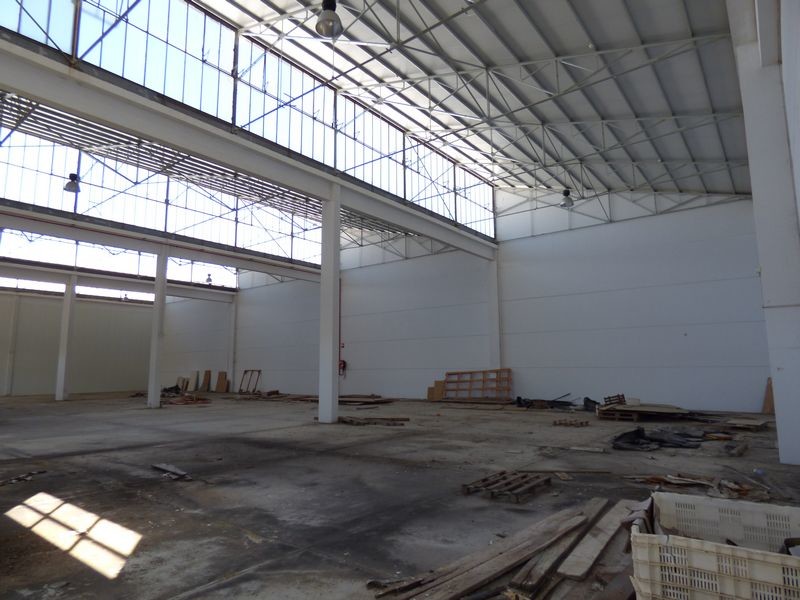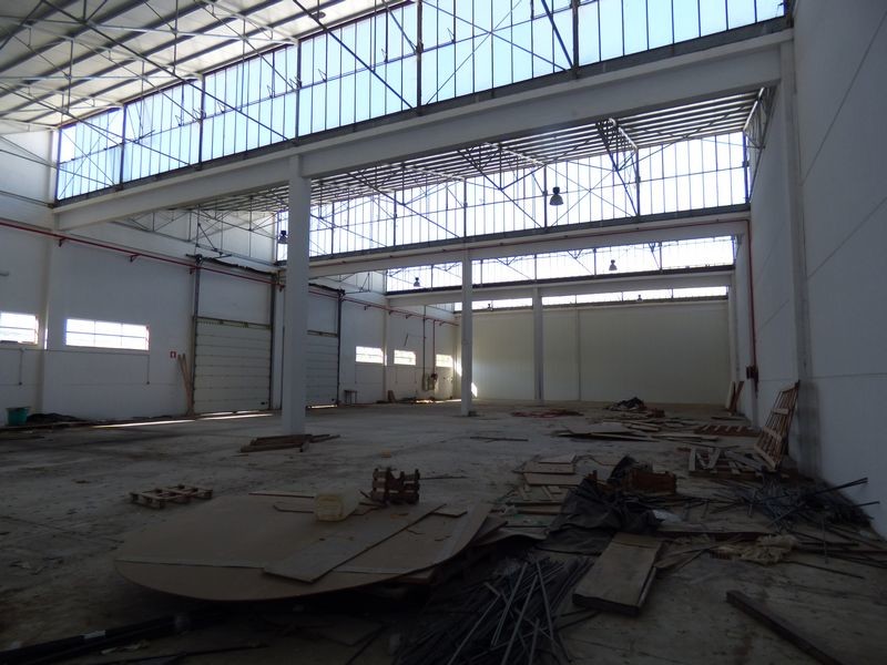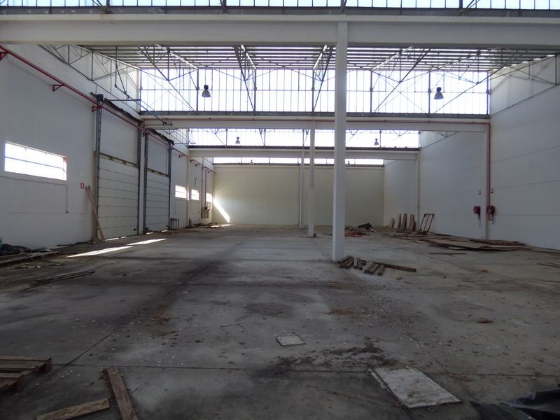 Armazém industrial amplo com muita luminosidade.